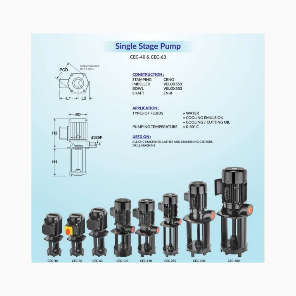 The industrial Coolant Pumps are used on all machine tools performing Turning, Milling, Cutting , Slitting, Grinding and other operations.